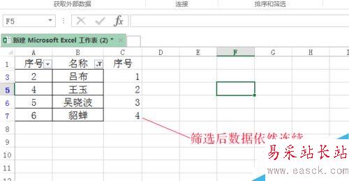 6、重新篩選發現,把右側序列刷新,序號還是連續的。