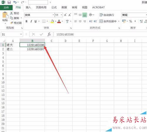 1、小編以兩個電話號碼為例,不論多少都可以用同樣的方法實現加密。