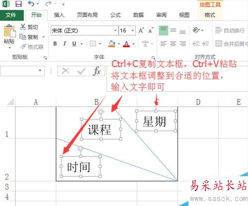 5、復(fù)制、粘貼文本框:選定文本框,按鍵Ctrl+C復(fù)制,Ctrl+V粘貼。將文本框調(diào)整到合適位置,輸入文字。