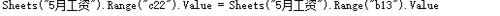 Sheet("5月工資").Range("c22").Value = Sheet("5月工資").Range("b13").Value