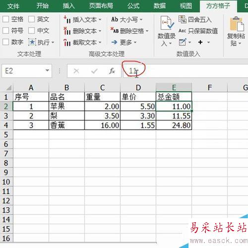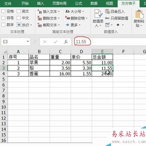 1、首先打開數據區域,看到總金額是由公式計算得來,如下圖所示: