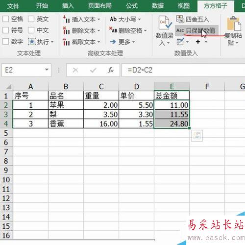 以上就是Excel使用方方格子一鍵去掉公式只保留數值方法介紹,操作很簡單的,大家學會了嗎?希望能對大家有所幫助!