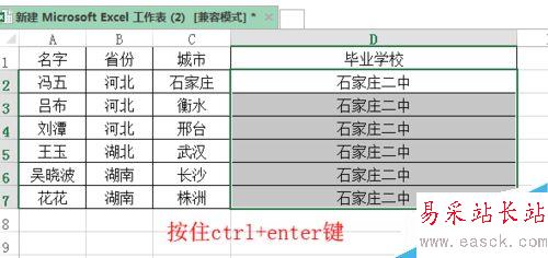 4、按住ctrl+enter鍵后發現所有相同數據都出現了。