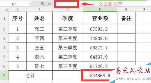7、然后返回excel表格,再次點擊有公式的格子;但是你會發現該表格顯示的公式為空,這就表明已成功隱藏格式,如圖所示(最后要記得點擊“保存”按鈕進行存);
