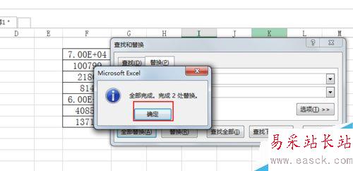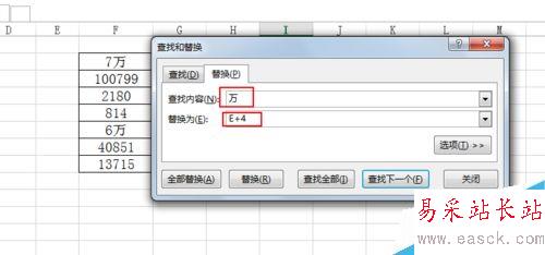 2、然后查找萬,替換為E+4,全部替換。