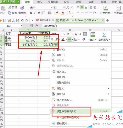 2、選中填寫日期的所有單元格,如圖所示,右擊鼠標(biāo),點(diǎn)擊‘設(shè)置單元格格式’
