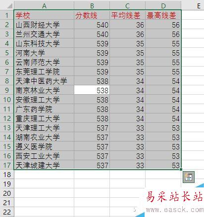 Ctrl+Shift+方向鍵,選擇從當前光標所在單元格到方向鍵所指的表格最邊緣有效數(shù)據(jù)單元格。