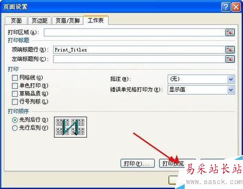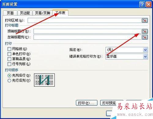 3、彈出頁(yè)面設(shè)置界面,點(diǎn)擊工作表——打印標(biāo)題