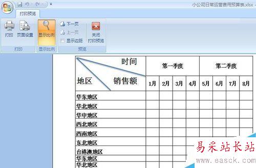 6、在打印預(yù)覽中查看每頁(yè)都顯示表頭的效果