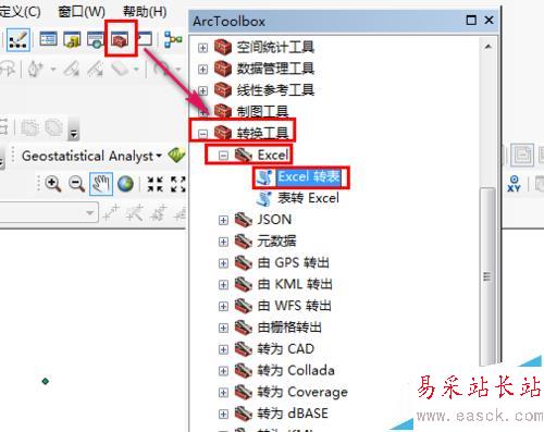 1、調出工具箱,展開轉換工具——Excel,選擇Excel轉表工具。如果直接載入excel就轉換成點時會有一些麻煩,轉成表的話,既可以避免了。
