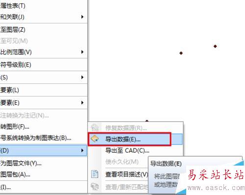 1、轉換成點后,在內容列表可發現多了個XXXX個事件,這就是點集文件,但尚不是矢量文件,通過右鍵它選擇數據,然后選擇導出數據。