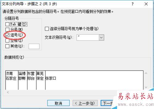 3、我們選擇逗號進行分割,然后單擊下一步。