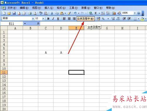 此時菜單欄的合并居中的圖標變成文字樣式:合并及居中(M)