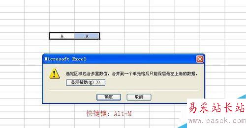由此我們可以確定excel合并單元格快捷鍵為:Alt+M