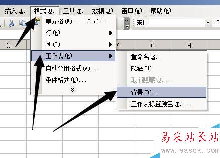 2、然后,打開excel工作表。在工作表的上方的菜單欄中順序點(diǎn);格式--工作表--背景;