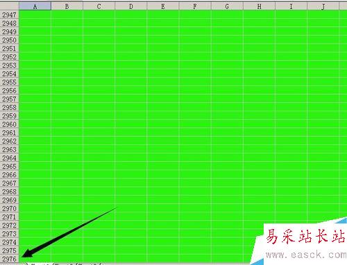 5、插入的綠色圖片不是只顯示在當(dāng)前屏,把工作表滾動(dòng)到工作表底部,背景一樣是顯示綠色。