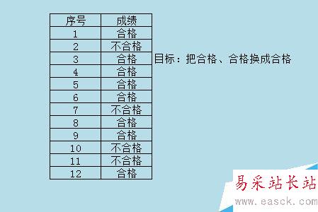 5、接下來只要把選擇出來的單元格內容改成合格就可以啦。同理,“優秀”也是一樣操作。
