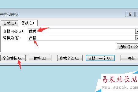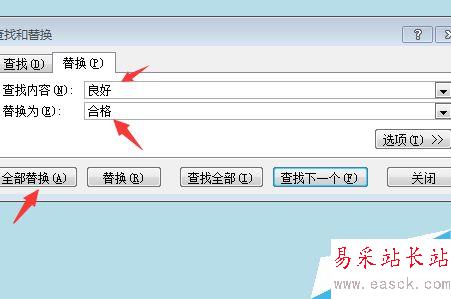 2、把查找內容填為“良好”,替換內容填為“合格”,然后選擇替換全部。所有的良好就變成了合格。