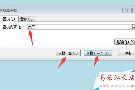 3、在查找內容中填入“良好”然后點擊“查找全部”或者“查找下一個”。