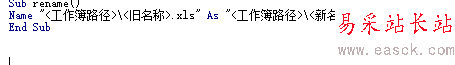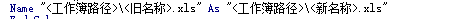 Name "<工作簿路徑>/<舊名稱>.xls" As "<工作簿路徑>/<新名稱>.xls"