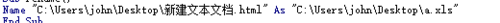 3、我們知道在excel中保存一個文件為另一個文件時可以重新命名,save as 就是本例中as 代碼的作用。name是命名函數,所以name as 就是將文件重命名。