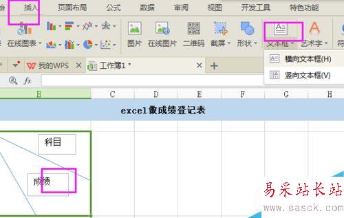 3、上面數據最難得就是成績和科目、姓名在一個格子里出現三個分隔。可以點擊“插入-圖形-直線”,根據你的需要進行直線的變換,如下圖的填充兩個格子。
