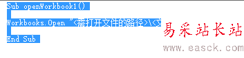 Workbooks.Open "<需打開文件的路徑>/<文件名>"