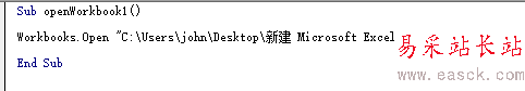 Workbooks.Open "C:/Users/john/Desktop/新建 Microsoft Excel 工作表.xlsx"