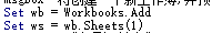 4、首先我們定義了了兩個對象變量,分別是wb和ws。wb是創建的新的工作薄,使用工作薄對象workbooks后的add方法新建。因為新建的工作薄有默認的三個工作表,所以可以直接定義使用set來定義ws為wb的第一個序列工作表。