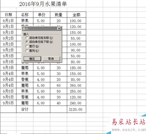 6、在跳出來的插入對話框中,選擇整行,點擊確定。