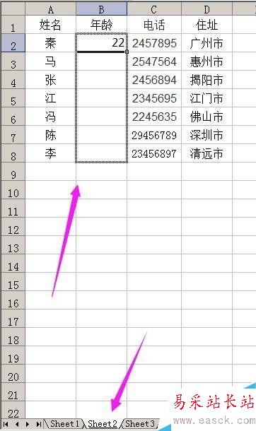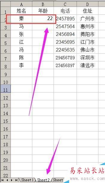 sheet1工作表有姓名和年齡的數據;sheet2工作表有姓名、電話和住址數據,但沒有年齡的數據;sheet1工作表的姓名和sheet2工作表的姓名一樣的,但順序是打亂的。