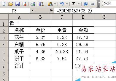 2、在D3單元格輸入=B3*C3 (金額=單價*數量),并只顯示2位小數點。