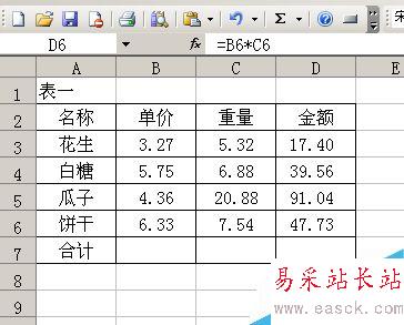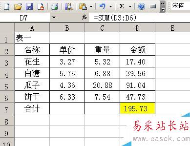 4、在D7單元格匯總所有的金額,結果顯示195.72。