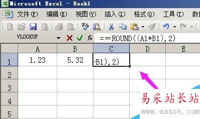 在C1單元格輸入:=ROUND((A1*B1),2)然后按回車鍵。