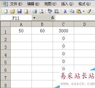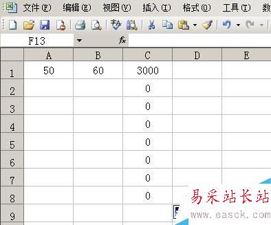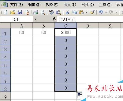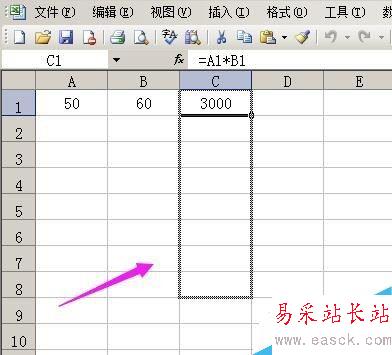 在C1單元格輸入:=A1*B1,然后按回車鍵,