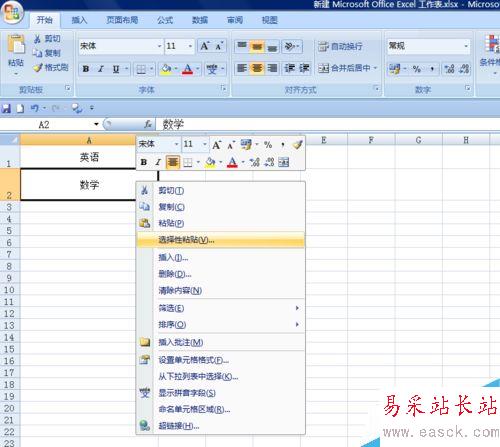 2、選中編輯單元格,單擊鼠標右鍵,在彈出的下拉菜單中選中【選擇性粘帖】選項。