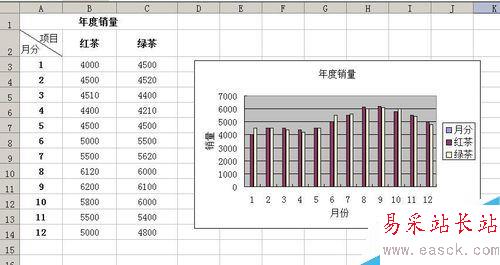 6、彈出的設置框內,在”圖表標題“這里,輸入該圖表的名稱,小編在這里輸入“年度銷量”;