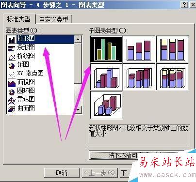 3、彈出:圖表向導;這里展示各種的圖表類型。