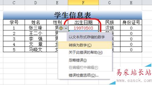 因為種種原因,我們得到的EXCEL工作表中出生日期是文本型,要想快速的將1個8位數(shù)字轉成日期型,怎樣才能轉換過來?