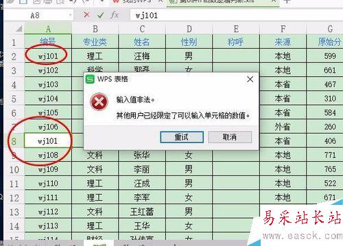 6、設置好以后,基本上就完成了,如果出現重復值,會出現“輸入值非法”等錯誤提示。