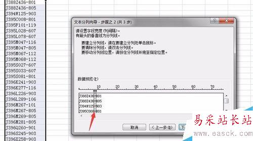 用固定寬度分列:在第二步的時候,直接用鼠標單擊在要分列的位置,可以同時將內容分列成多個部分哦~后面的步驟和固定符號的設置相同。