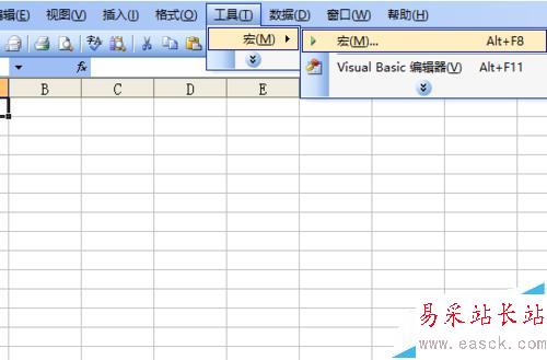 6、究竟神奇不神奇,我們來試試,驗證一下我們的發明創造。關閉vbe窗口,回到excel表格界面。在菜單欄操作,“工具”——“宏”——“宏”,就會出現可以調用的程序了。