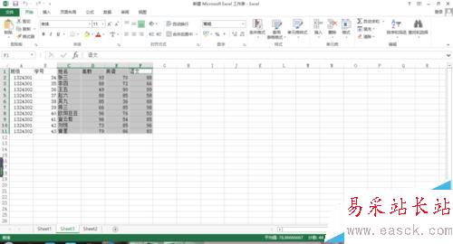 2、按住ctrl鍵,選擇你要做成圖表的數據的那一行或者那一列。比如我選擇姓名,高數,英語,語文這四列。