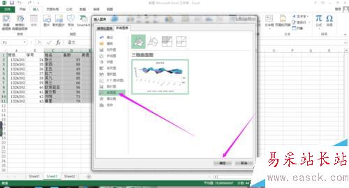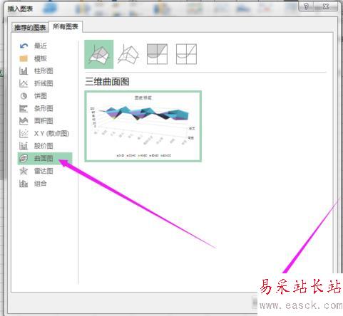 5、然后點擊“曲面圖”,選擇哪種曲面圖即可,之后再點擊“確定”。結果如圖所示。