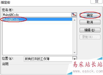 7、使用方法:選中要轉(zhuǎn)換二維碼的單元格,按alt+F8快捷鍵調(diào)出執(zhí)行窗口,選中MakeQRCode 執(zhí)行
