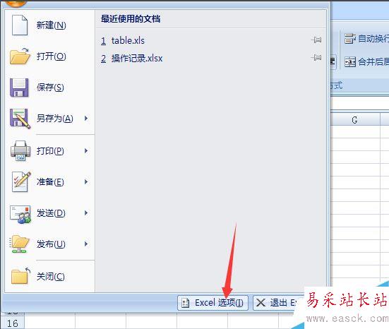 在彈出的office功能設置界面中,點擊excel選項按鈕,進入excel選項設置界面中,進行詳細功能設置