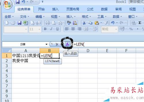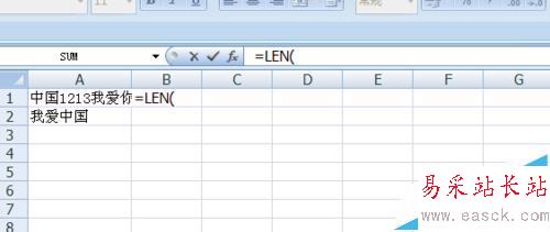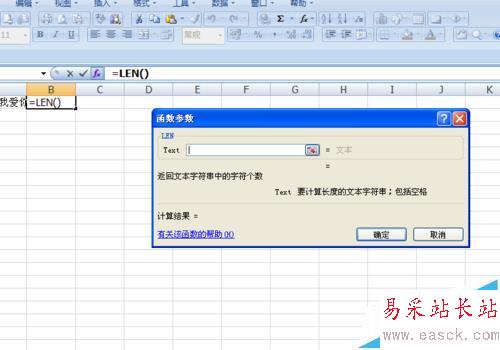 3、我們在B1單元格中輸入=LEN,會彈出如圖效果