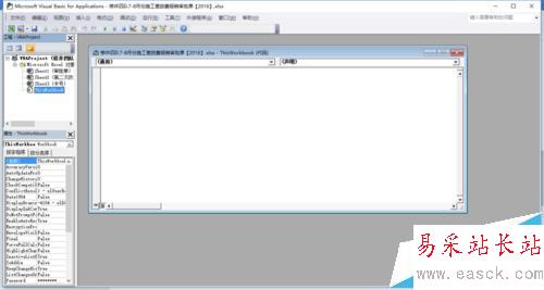 3、打開Excel表格,同時按Alt+F11鍵,出現(xiàn)一個窗口,雙擊左邊的ThisWorkbook會彈出一個窗口。