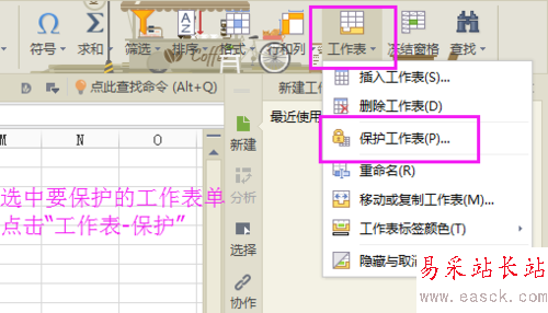 2、對工作表的保護。選中你想保護的工作表單或者局部,點擊“工作表-保護工作表”