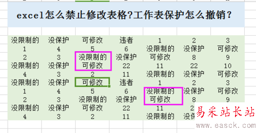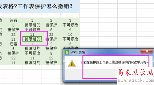 6、如果你想修改工作表,就需要進行“撤銷工作表保護”,就可以對表單進行修改了。如下圖將“被保護”換成“沒保護”被限制換成沒限制、